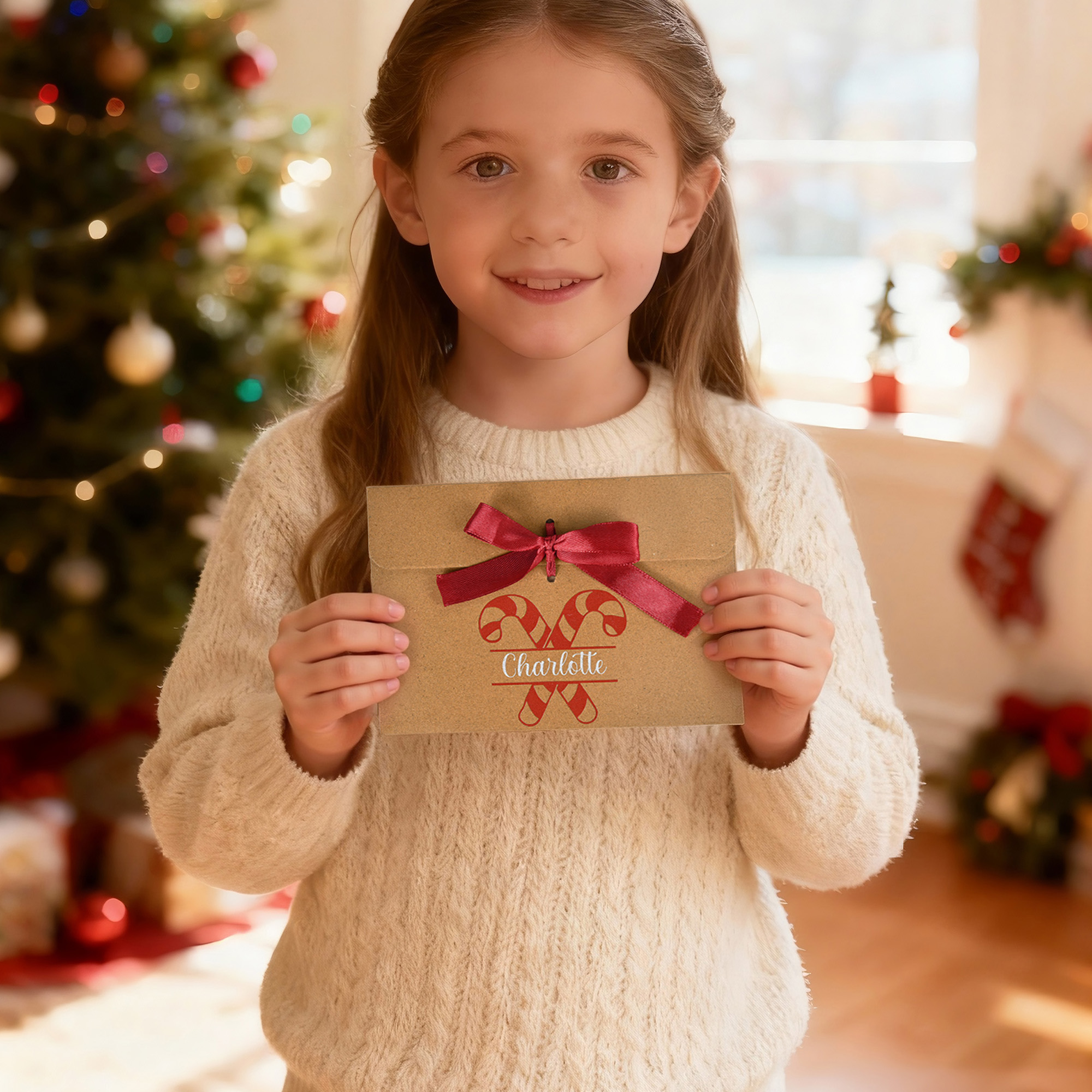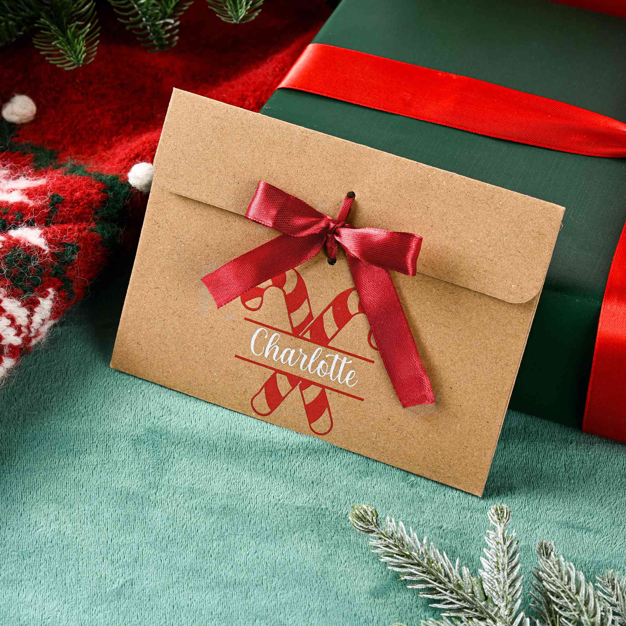 Durable Kraft Finish - Made with sturdy kraft paper and paired with a matching ribbon, these envelopes hold vouchers, cash, or small notes securely. The natural texture and clean print give them a cozy, classic Christmas look.